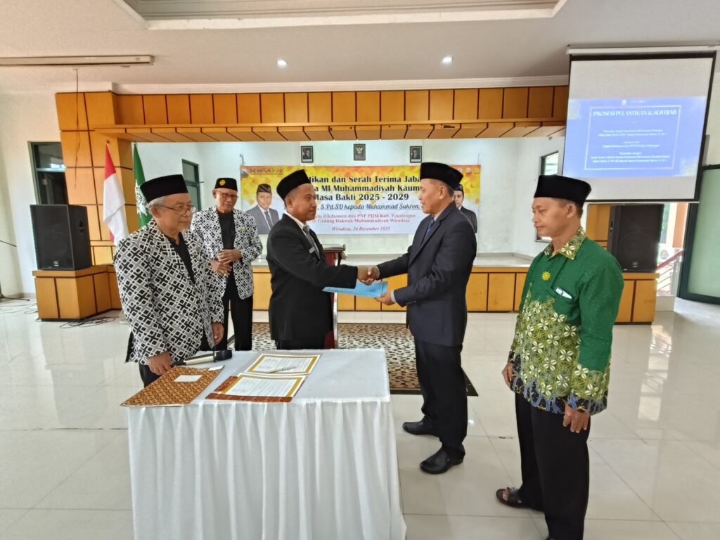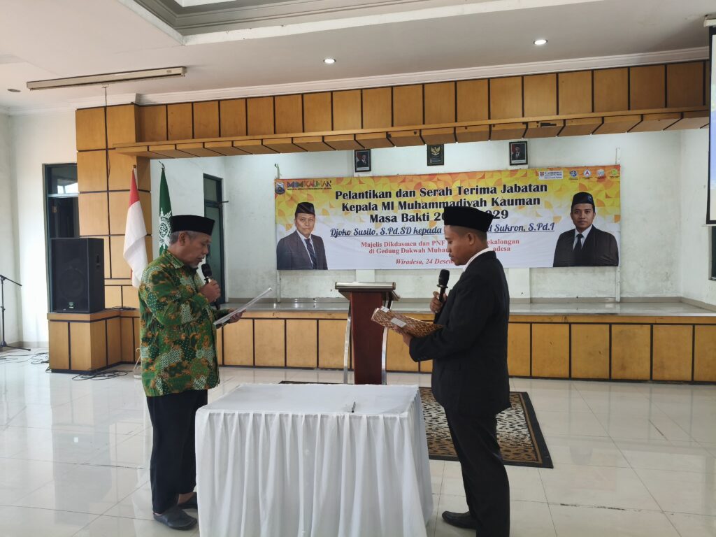 Kauman – MI Muhammadiyah Kauman menggelar acara serah terima jabatan dan pelantikan kepala madrasah pada Rabu, 24 Desember 2025 bertempat di Gedung Dakwah Muhammadiyah Wiradesa Kegiatan tersebut berlangsung khidmat dan dihadiri oleh jajaran pimpinan Persyarikatan Muhammadiyah, komite madrasah, dewan guru, serta undangan lainnya.